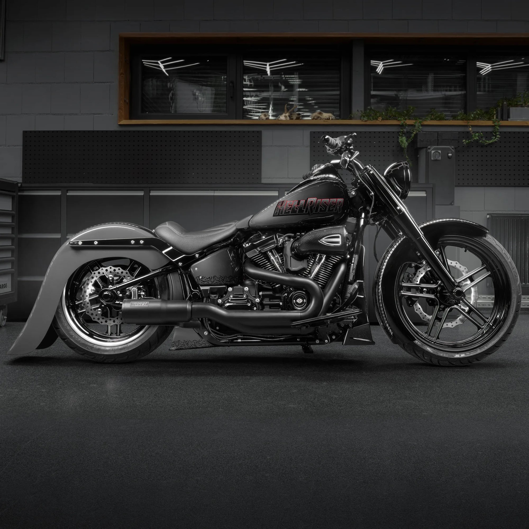 We proudly present our new part, which you will not find at any other store in the world. When Building and customizing motorcycles, you often see some weak design spots, leading you to more improvements. That is why we have created this Back Frame Cover to cover that ugly space between the frame and rear swingarm when putting any custom exhaust on your M8 Softail bike. This spoiler flows into the gap and makes the frame look like one harmonic piece. Killer parts for you guys!