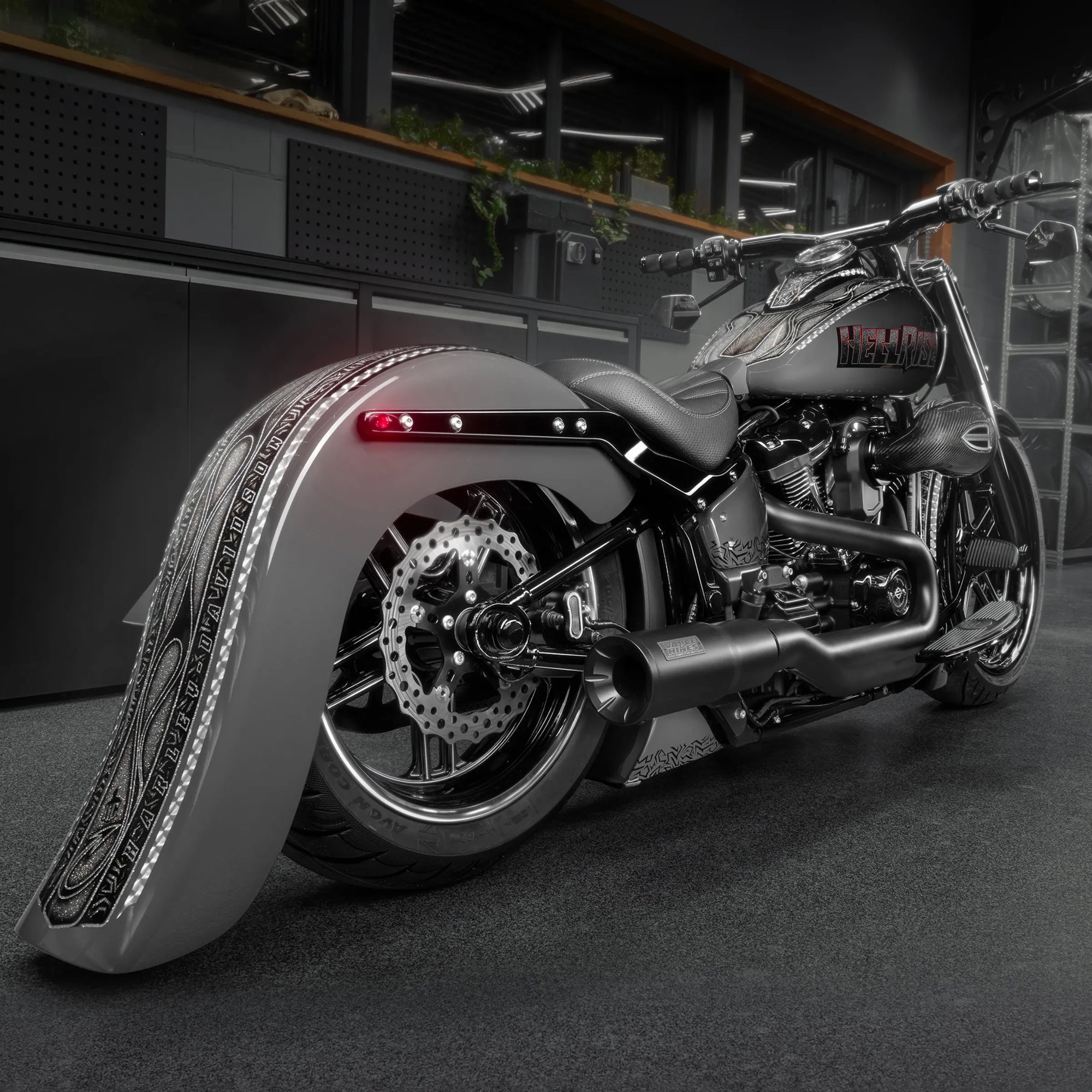 Check out the latest game-changer for your 2018-2024 Softail: the Killer Custom 7.5" Stretched Rear Fender. If you're all about pushing the limits and making your ride stand out, this fender's got your back. It's built to handle those fat 180-200 custom width wheels, and it doesn't matter if you're rocking 16", 17", or 18" wheels—this fender's a perfect fit.