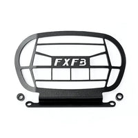 Super cool add-on part for our custom "Aggressor" series Softail Fat Bob FXFB FXFBS headlight fairing. It comes black denim powder-coated for a super easy bolt-on feature. This Grill is stiff, stable, and does not reduce the intensity/strength of the beam.