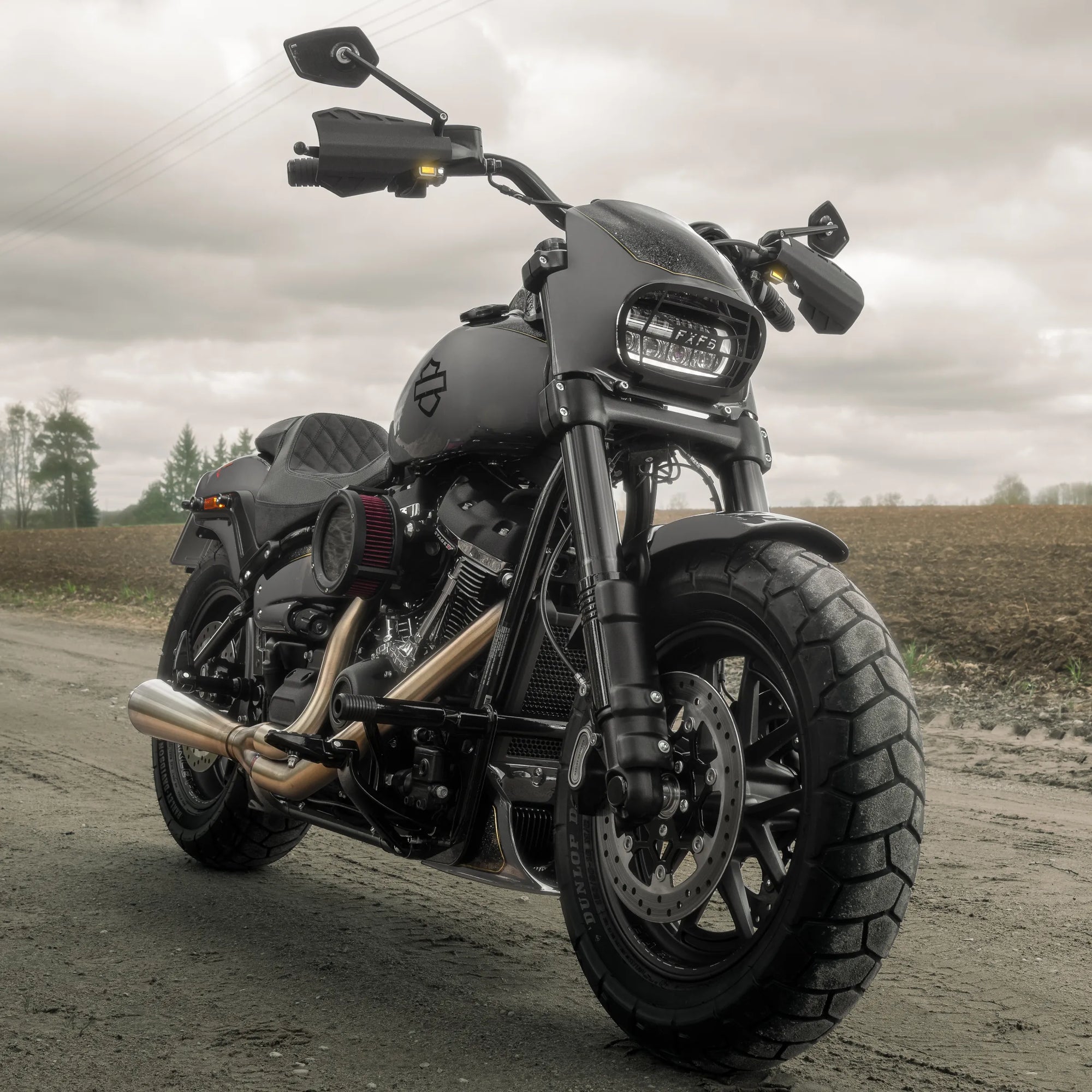 We present a new "Bobbstr" collection and our unique Chin Spoiler for Harley-Davidson M8 Softail. Our New "Bobbstr" Series short Chin Spoiler will cover that ugly gap between frame and tire. Also, this spoiler solves the problem as other spoilers in the market tend to block airflow to the voltage regulator, which then overheats. Besides its functional design, the spoiler gives an aggressive and modern look to your New Softail model line.
