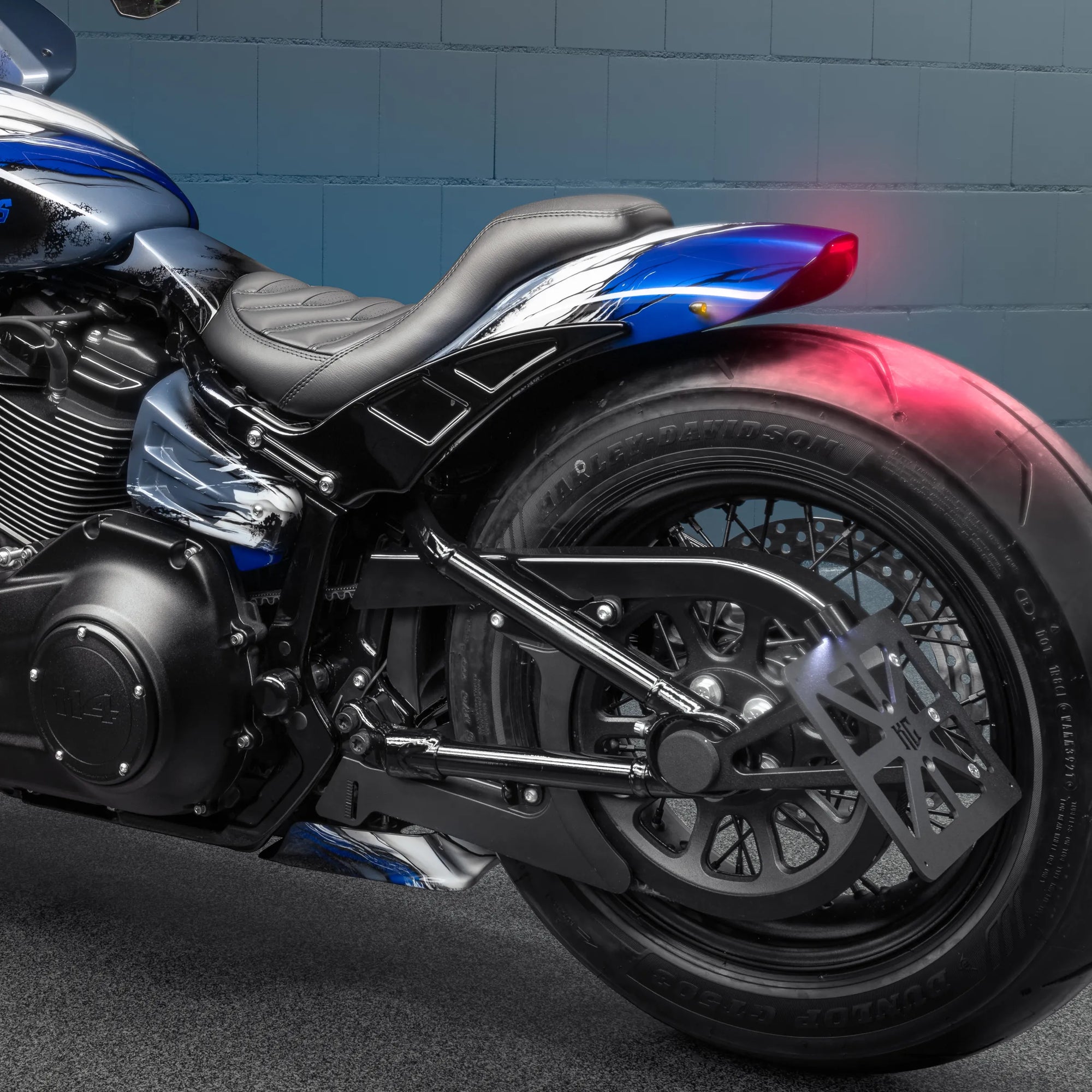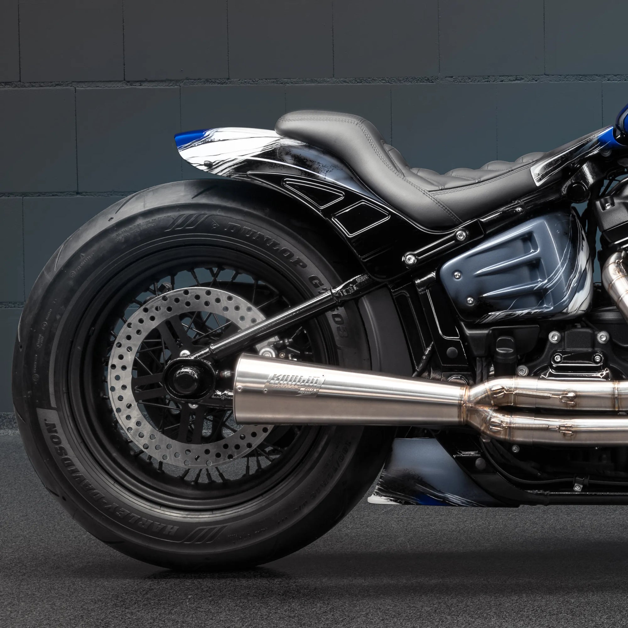We offer a special wide front wheel fender designed specifically for Softail M8 FXBB/FXST lower legs. It complements our wide wheel triple trees and is suitable for various custom applications. Contact us for more information and to explore our range of customization options.