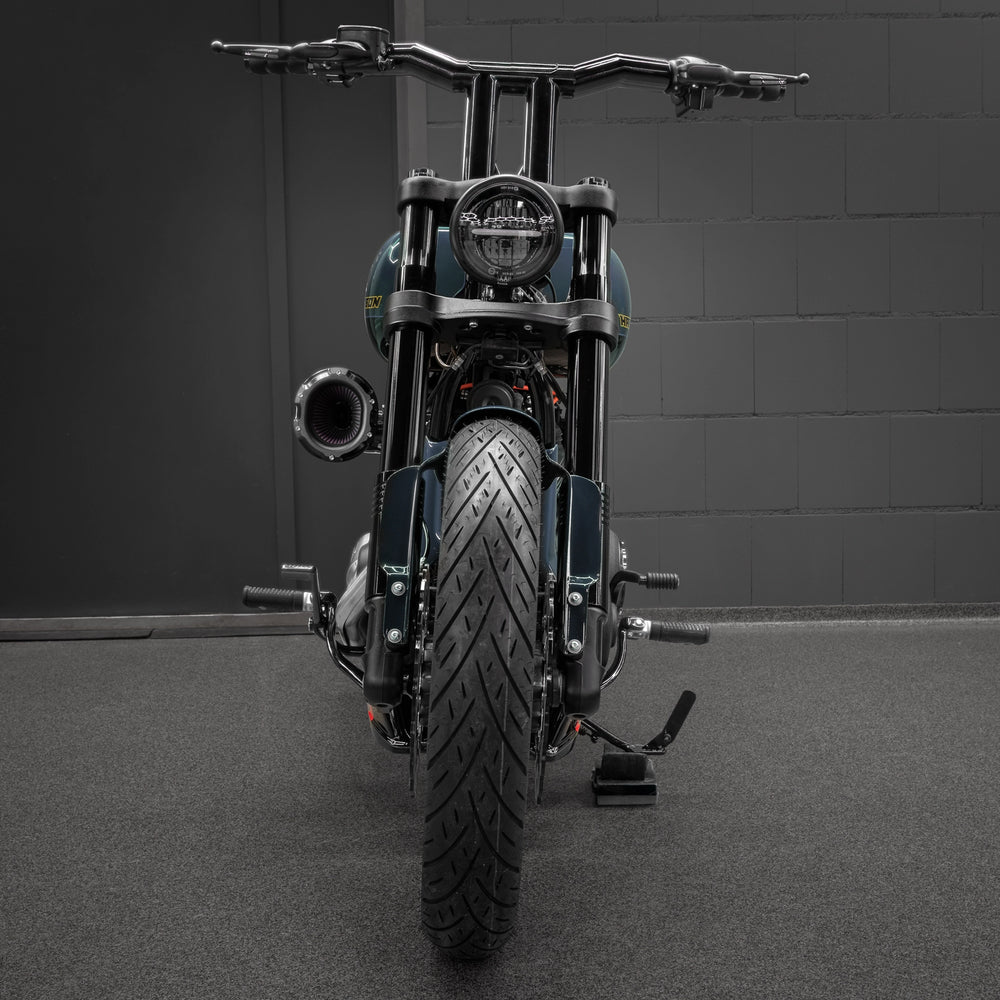 Both 'Killer Bull' and 'Monarch' handlebars share the same aggressive style and overall look. The main difference lies in the fit: 'Monarch' bars are slightly narrower at the lower section, making them a perfect match for bikes with narrow triple trees like the Street Bob (FXBB) and similar models. 'Killer Bulls' are designed to fit wider triple trees, making them ideal for models like the Fat Boy, Heritage, or Low Rider S. That said, both models will fit all Softail models—so in the end, it’s really just a matter of personal taste and design preference.