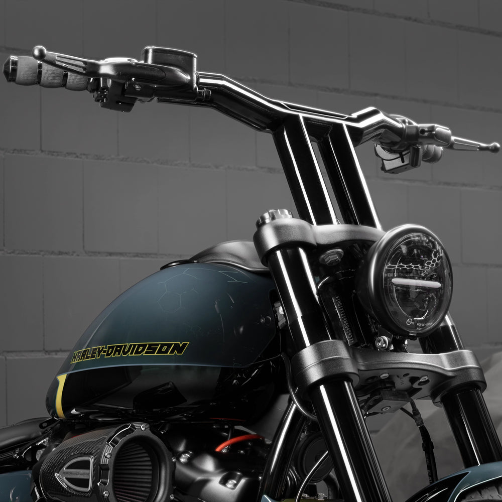 Designed by riders who get it, these bars fit all Harley-Davidson models with standard 3.50” center-to-center riser mounting holes—including Softail, Dyna, and Sportster models. Built for those who push their Harley to the limit, they deliver the perfect blend of performance, style, and control, bringing a cool, aggressive vibe with a sporty edge.