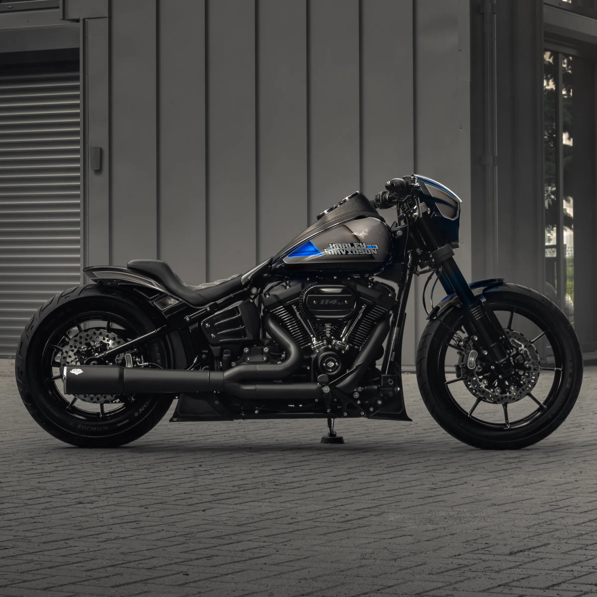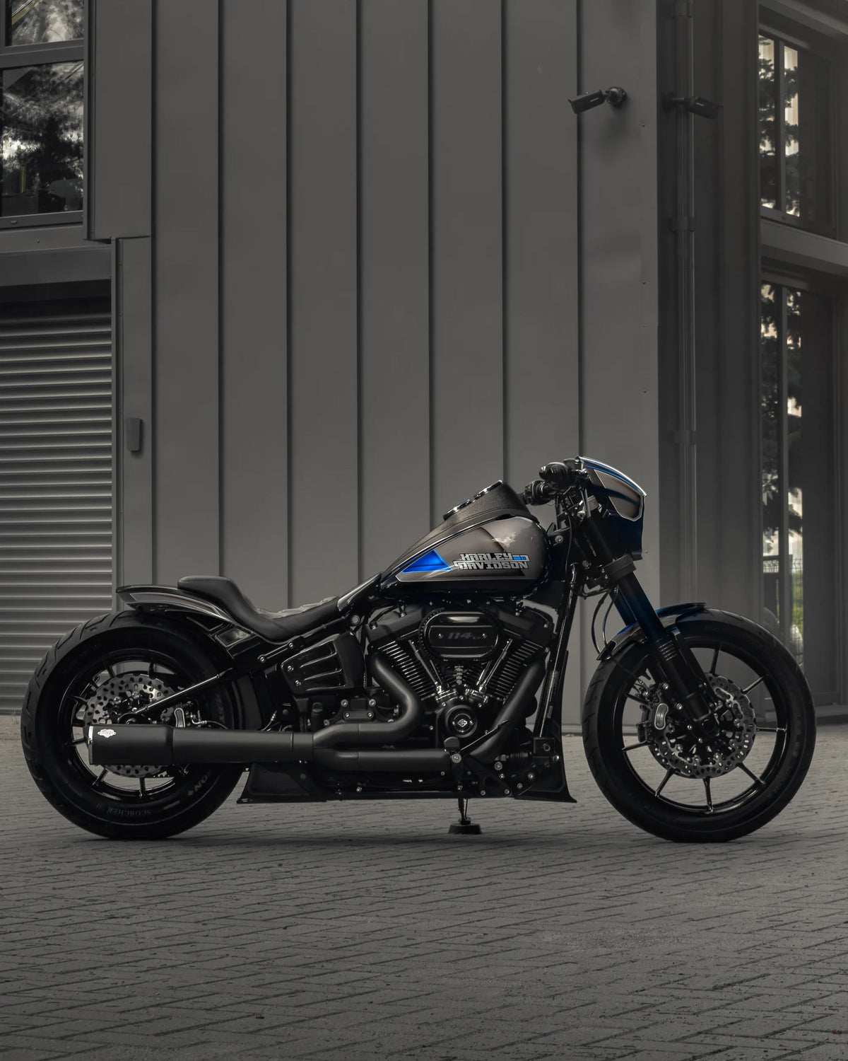 This Low Rider S is built to look fast standing still. The mix of blacked-out muscle and blue accents pushes it into new territory - modern, stylish, and unapologetically bold. It balances power and elegance without losing its street-born edge.